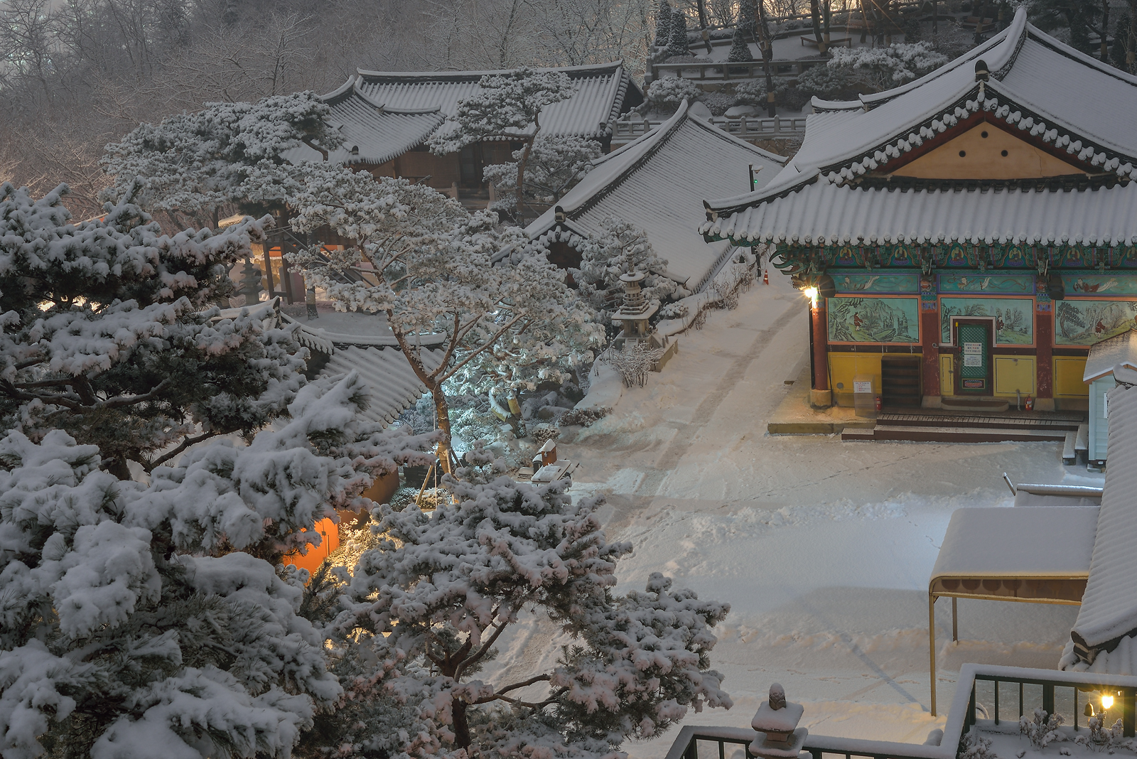 야경이지만 하얀 눈 때문에 야경인 듯 주경처럼 나왔네요.