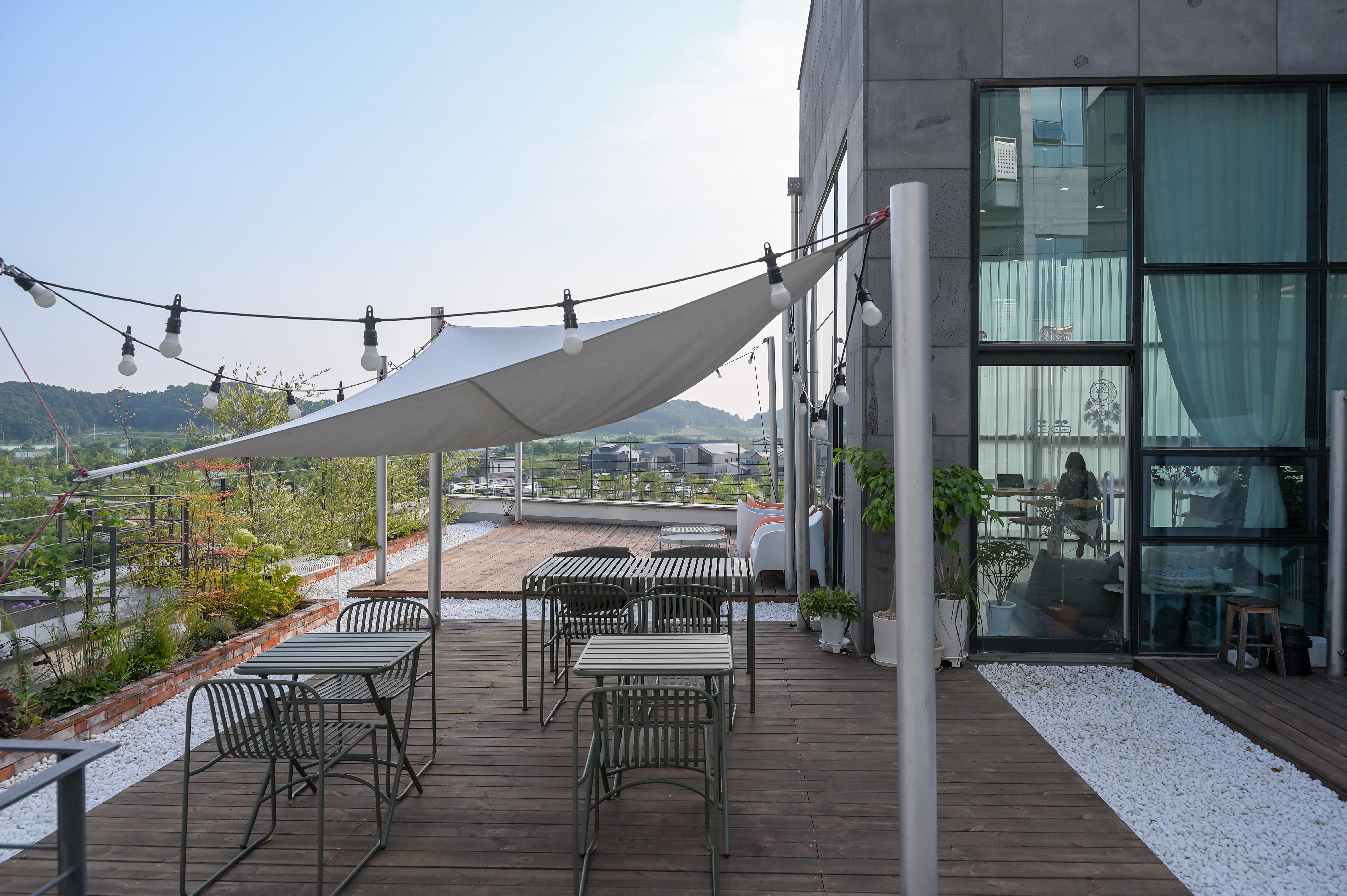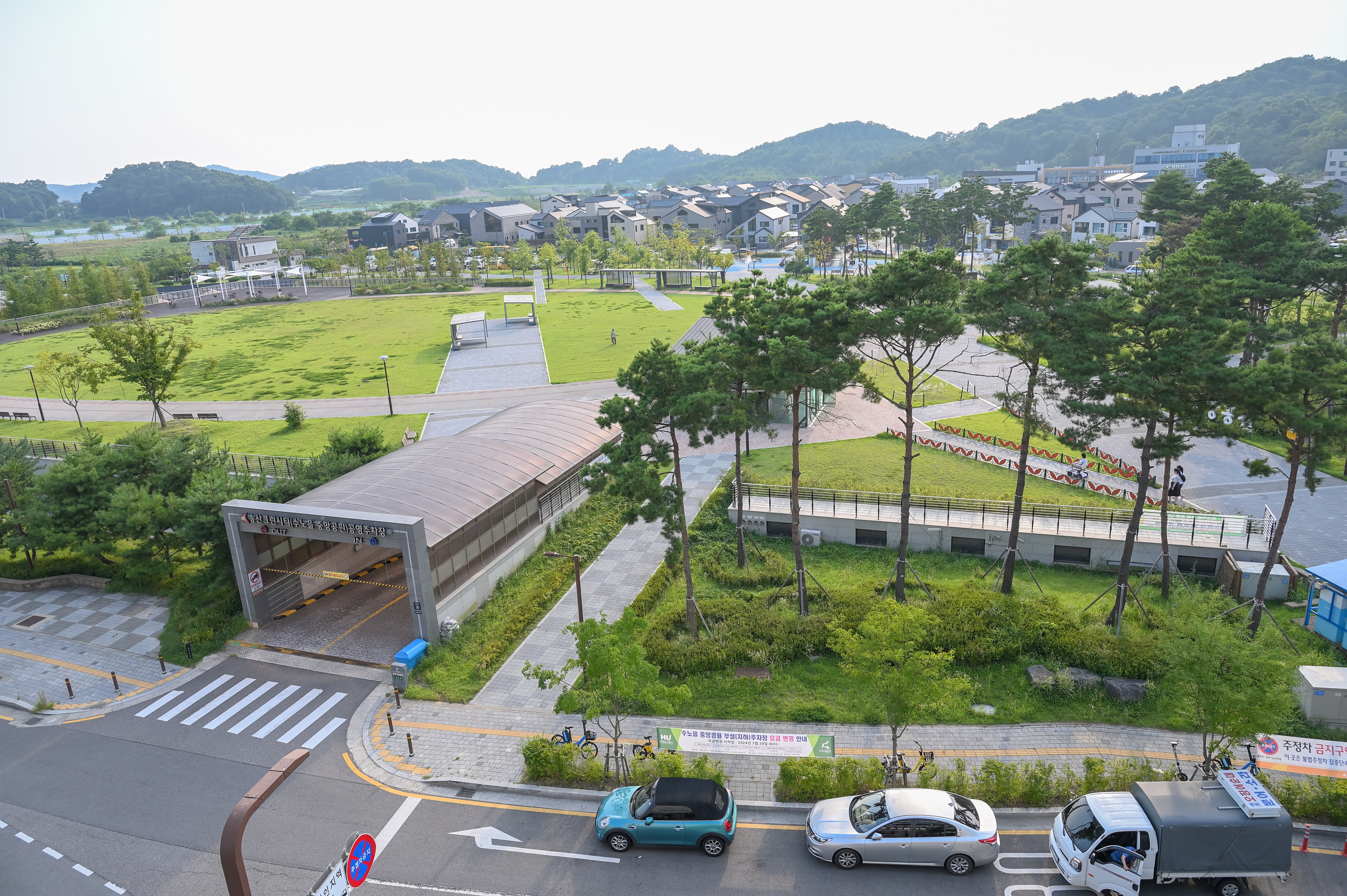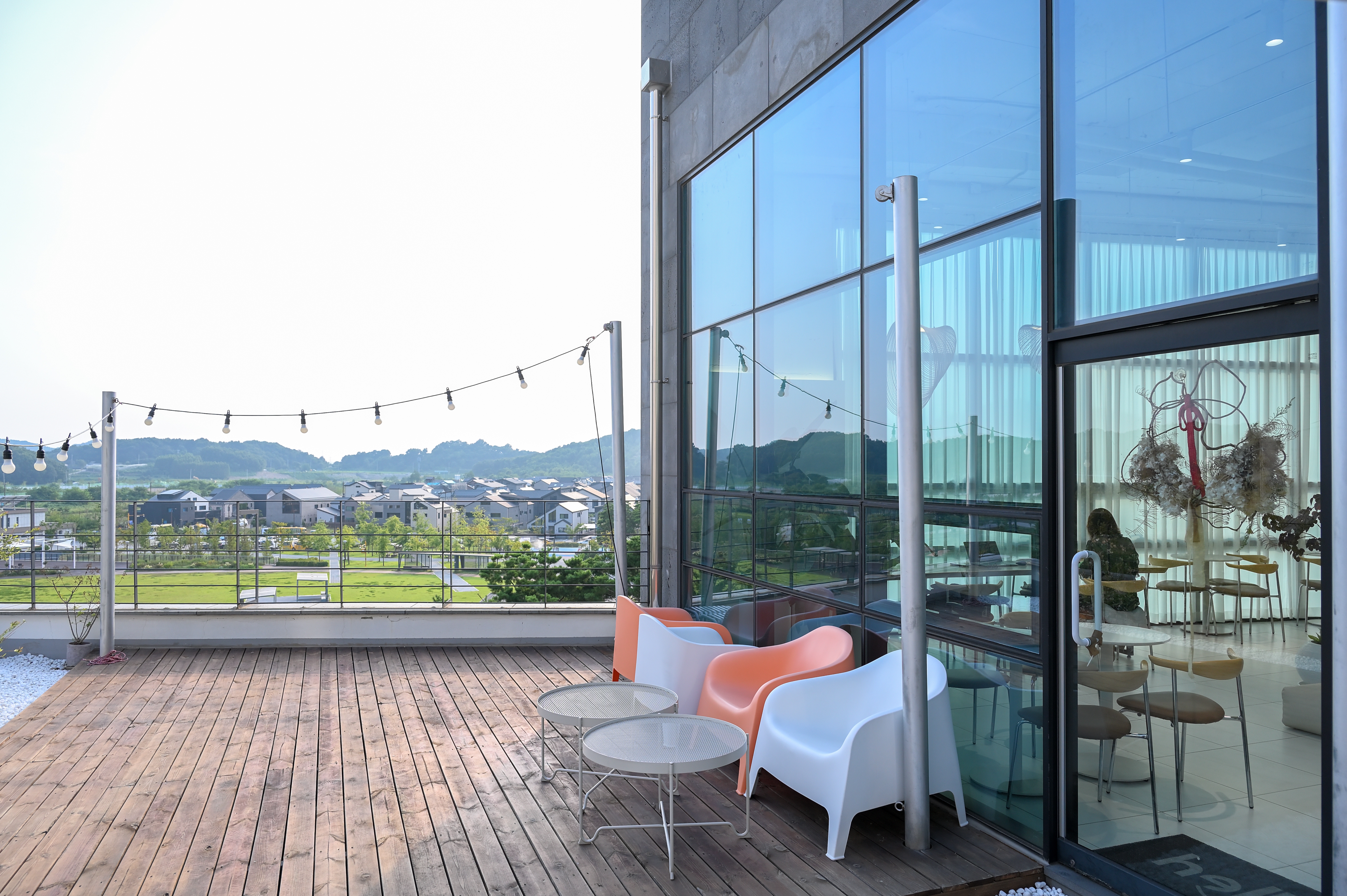 테라스에서 보이는 수노을중앙공원의 풍경이 굉장히 이국적이네요~