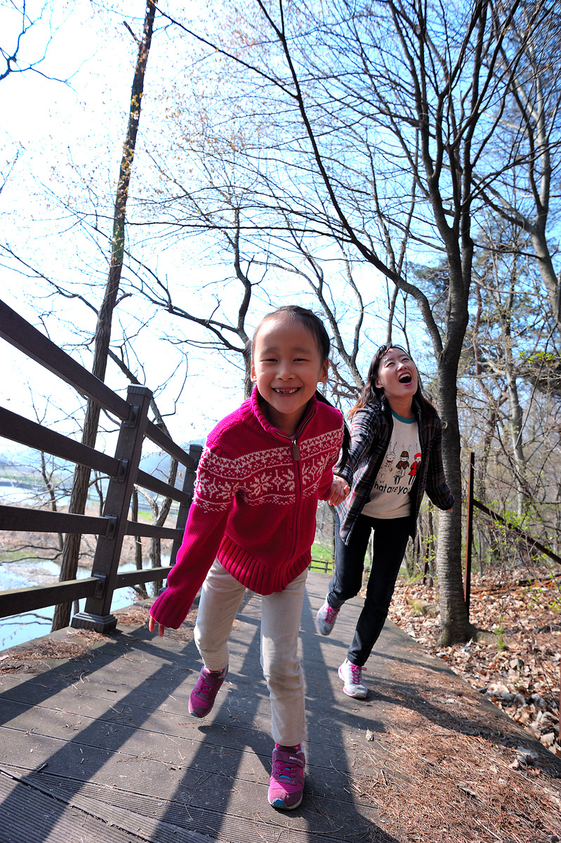 천 건너편 산책로에서 바라본 모습.. 물과 나무와 텐트가 잘 어우러졌네요~