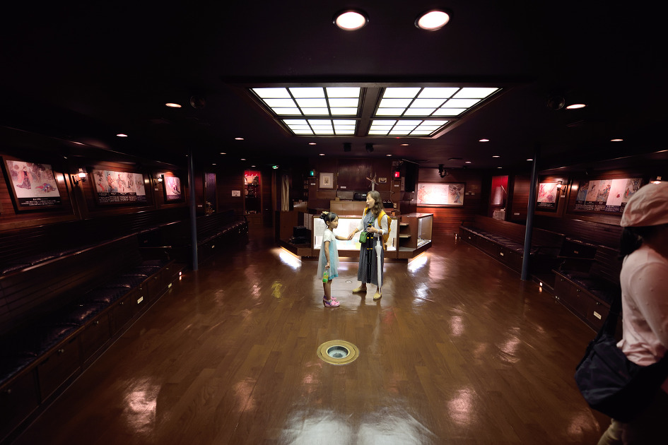 카이유칸 입구 쪽으로 가시면 선원 복장을 하신 분이 있고 사람들 가는 쪽으로