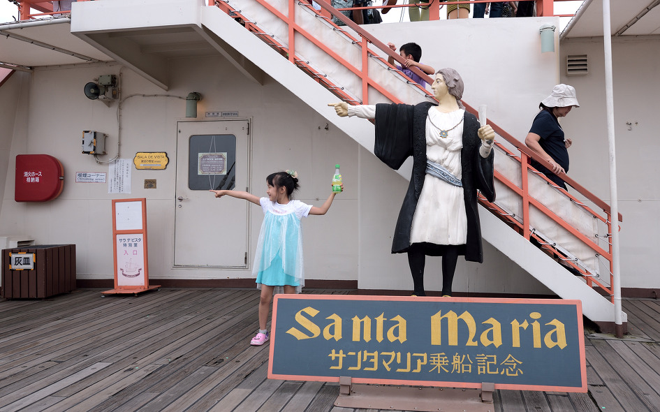 왜냐면 콜럼버스가 아시아 대륙을 발견할 때 타고 왔던 산타마리아호를