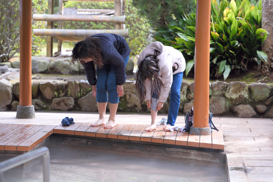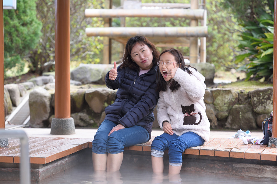 바지 걷고 뜨끈한 온천수에 발을 담그니