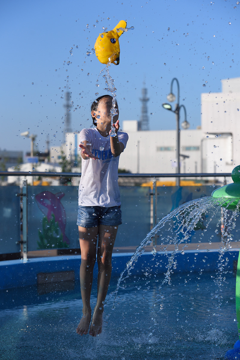 아이들은 깊지 않은 물놀이터에서 신나게 놀고...