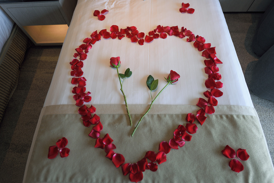 결혼기념이라고 했더니 침대에 이렇게 꽃장식을 해주셨네요~