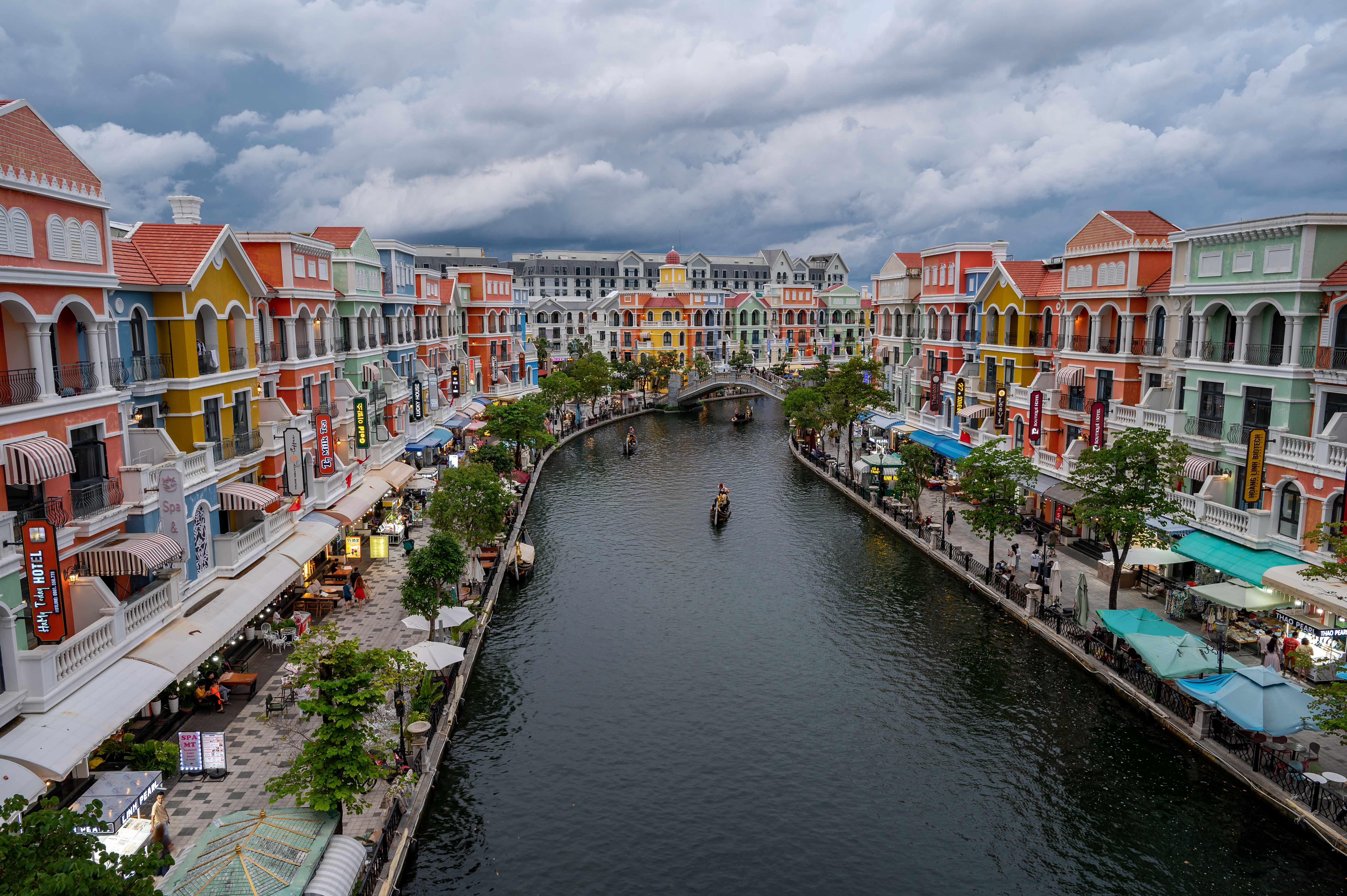 푸꾸옥 그랜드월드는 쨍한 컬러감에 하노이보다는 좁은 수로와 인도로