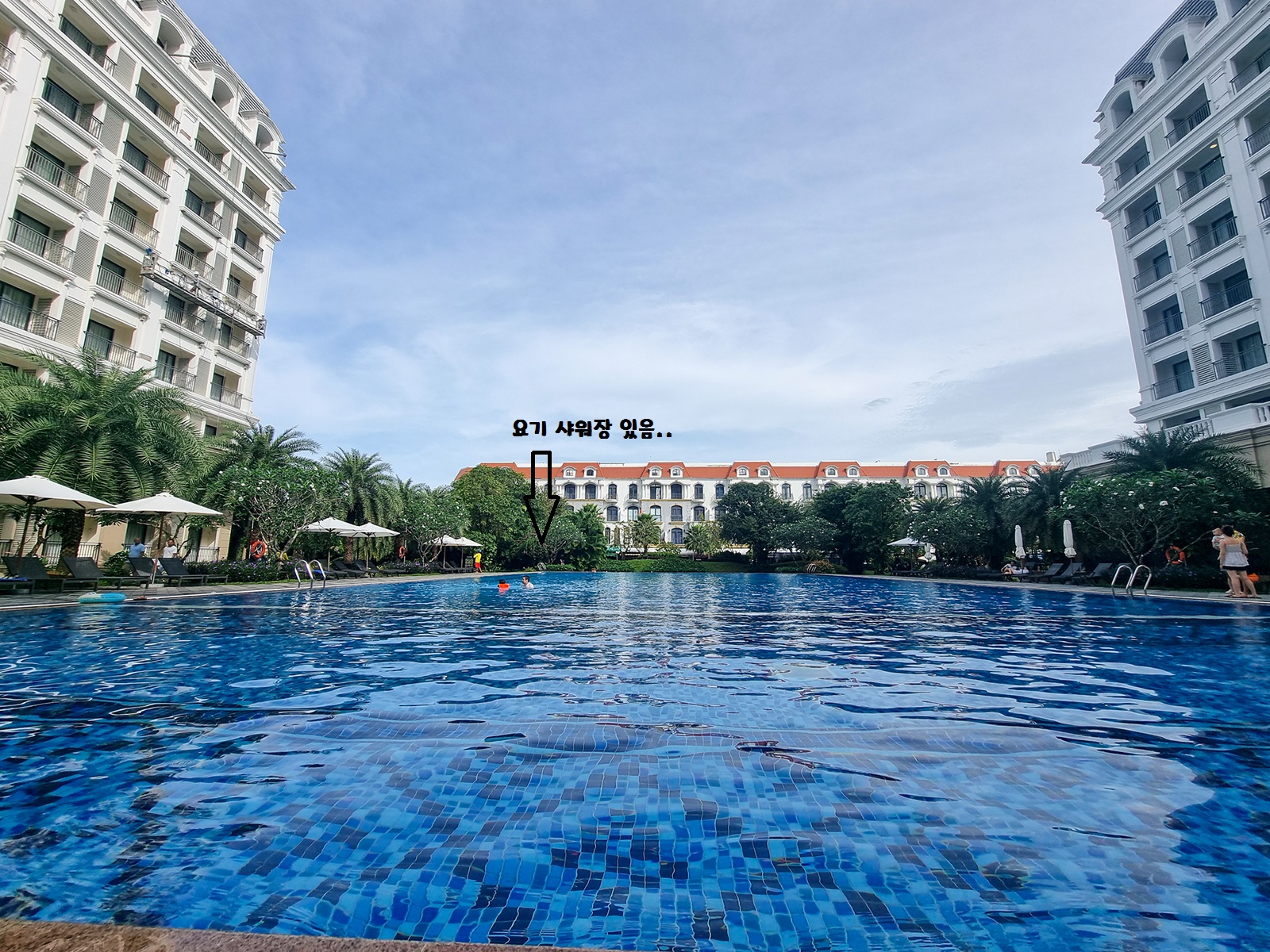 다음날 호텔 한바퀴산책 중 수영장 끄트머리에 있는 샤워실을 발견했습니다..